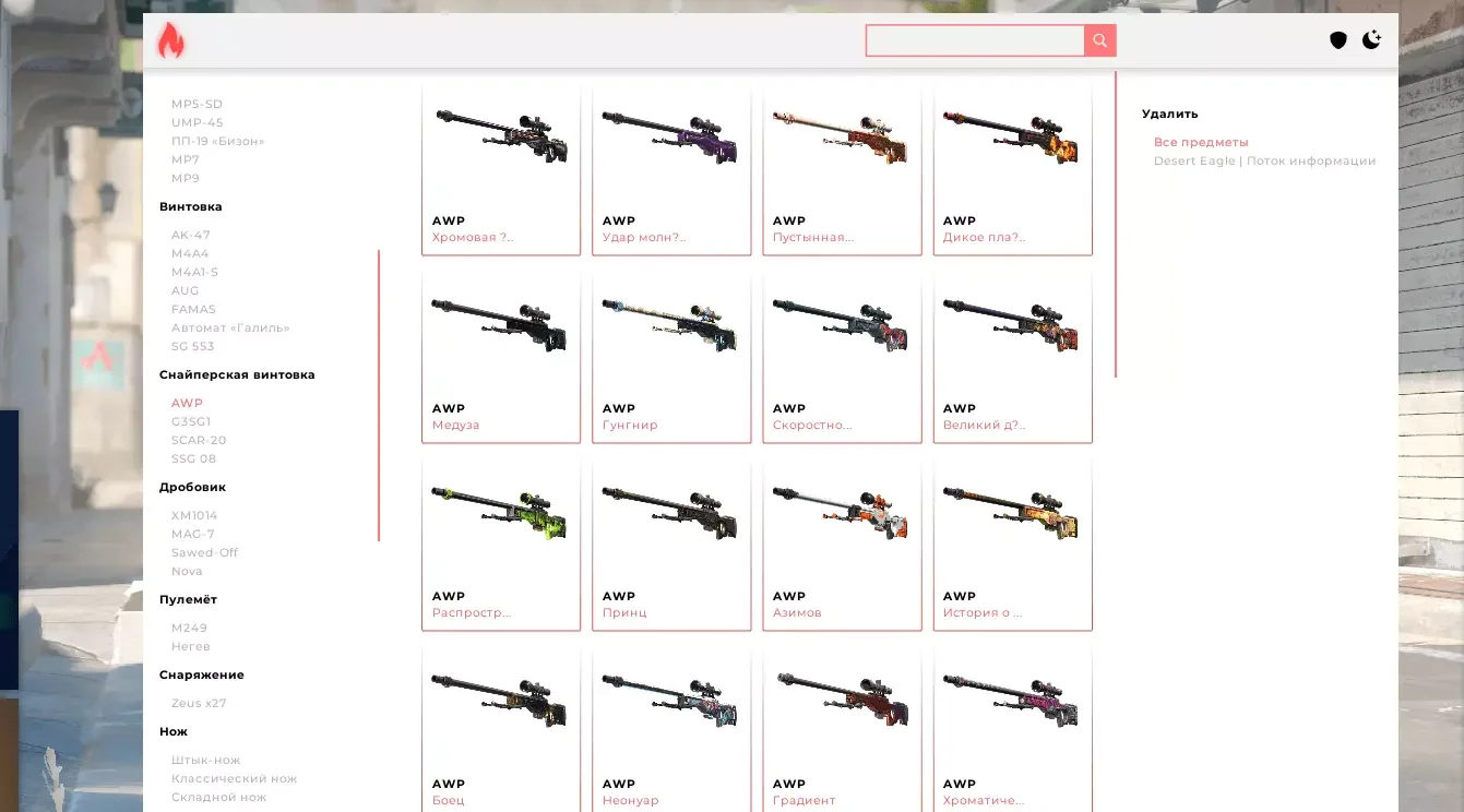 Широкий выбор скинов для оружия и персонажей