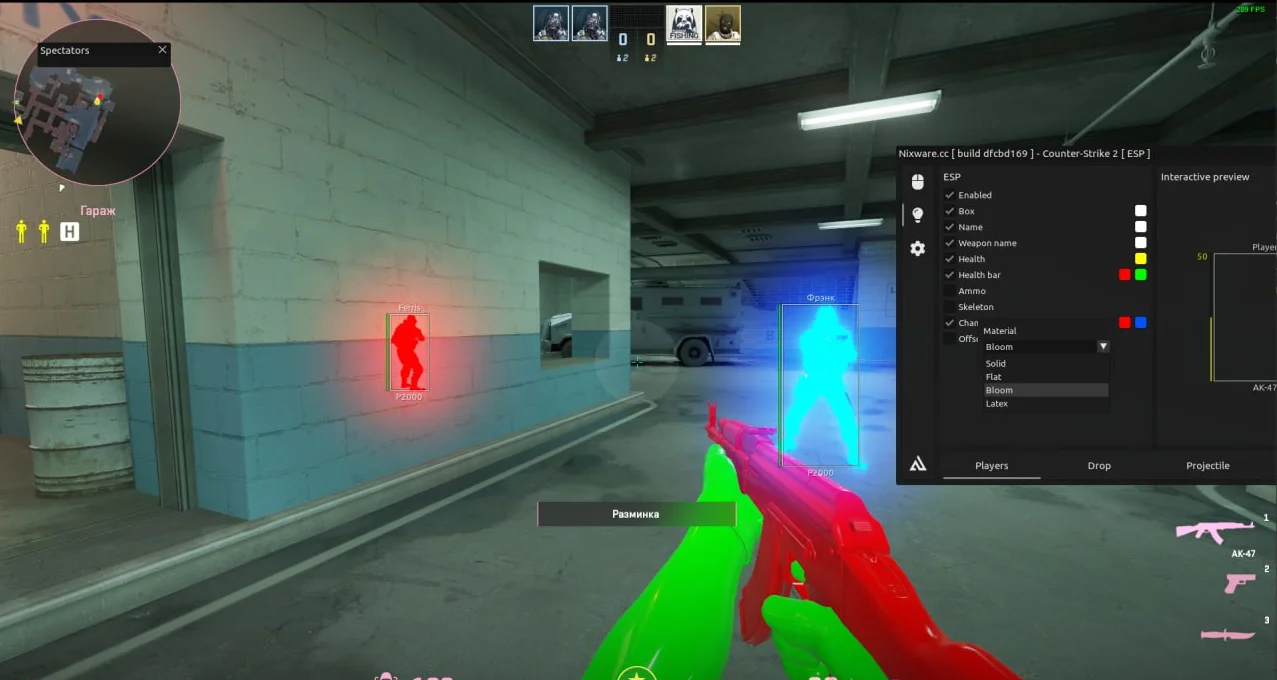 Основные возможности чита NixWare обеспечивают комфортную и стабильную работу без сбоев и лагов. Аимбот позволяет автоматически прицеливаться с высокой точностью, ВХ дает возможность видеть противников сквозь стены, а анти-антишит функции снижают риск блокировки аккаунта. Чит регулярно обновляется и поддерживает все последние версии CS 2, что делает его актуальным и эффективным инструментом для игры.