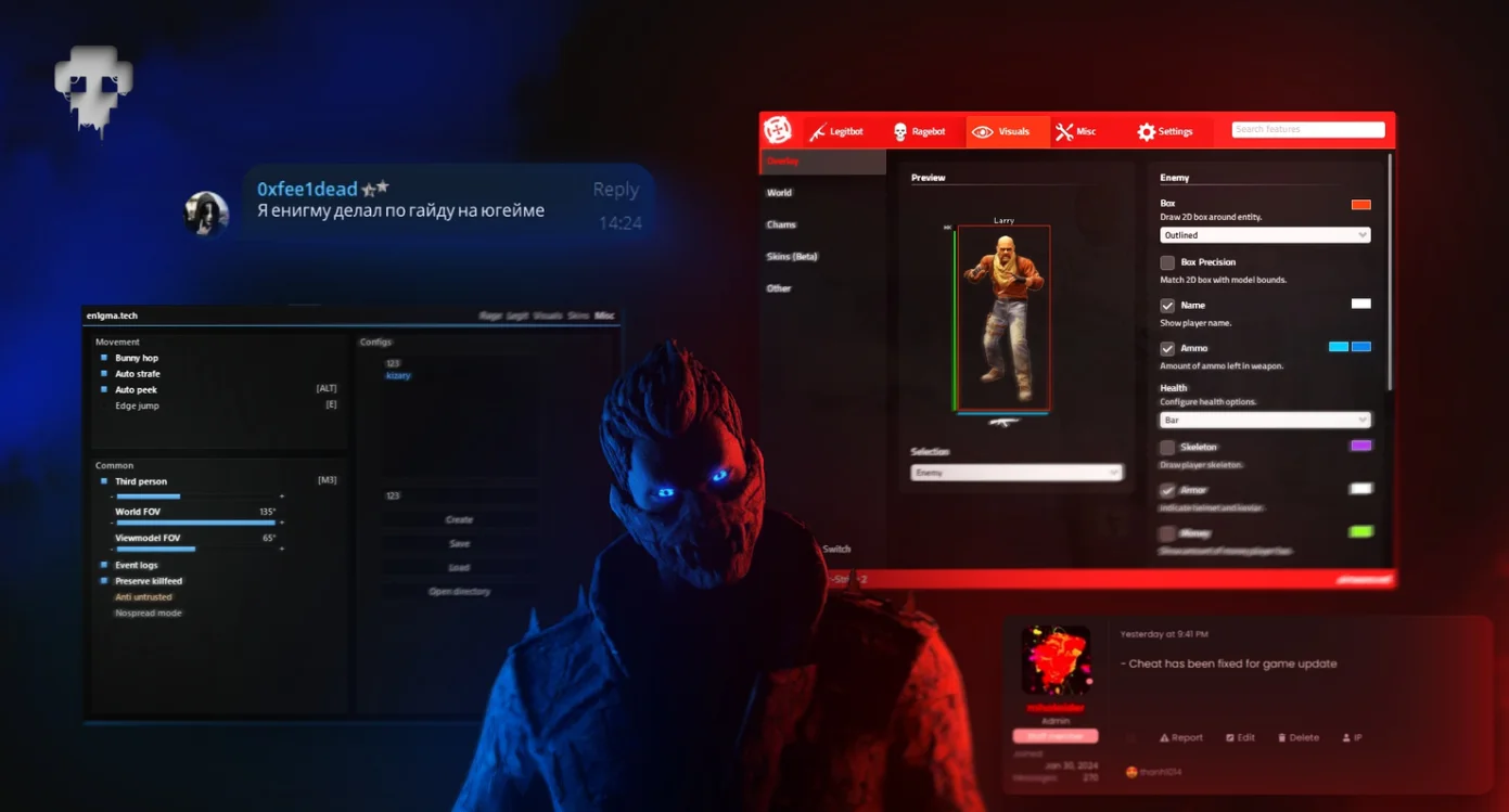 Скачать чит Enigma v2 для КС 2 стоит тем, кто хочет почувствовать настоящую мощь HVH-инструментов и всегда выходить победителем в жестких матчапах. Благодаря понятной установке и готовому конфигу вы сможете начать использовать софт сразу после инжекта. Чит стабилен, быстро загружается и не вызывает вылетов даже на слабых ПК. Используйте только для личного ознакомления и тестирования. Enigma v2 — это один из самых мощных и надёжных HVH-читов для CS 2, созданный для тех, кто ценит контроль, точность и силу.