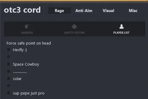 Otc3 cord v0.3.0 удобен в конфигурации и даёт гибкие параметры для тонкой подстройки под личный стиль игры. Внутри доступны режимы «легит» для незаметной игры и «агрессив» для максимальной результативности, фильтры отображения (только враги, только оружие, только трупы), приоритеты по частям тела и задержки срабатывания для triggerbot. Благодаря понятному интерфейсу вы быстро настроите горячие клавиши, сохраните наборы параметров для разных карт и стилей и будете переключаться между профилями в пару кликов. Otc3 cord v0.3.0 подходит как новичкам, так и ветеранам — новичок получит помощь в удержании прицела и ориентации, а опытный игрок — тонкий инструмент для повышения КПД и контроля карты.