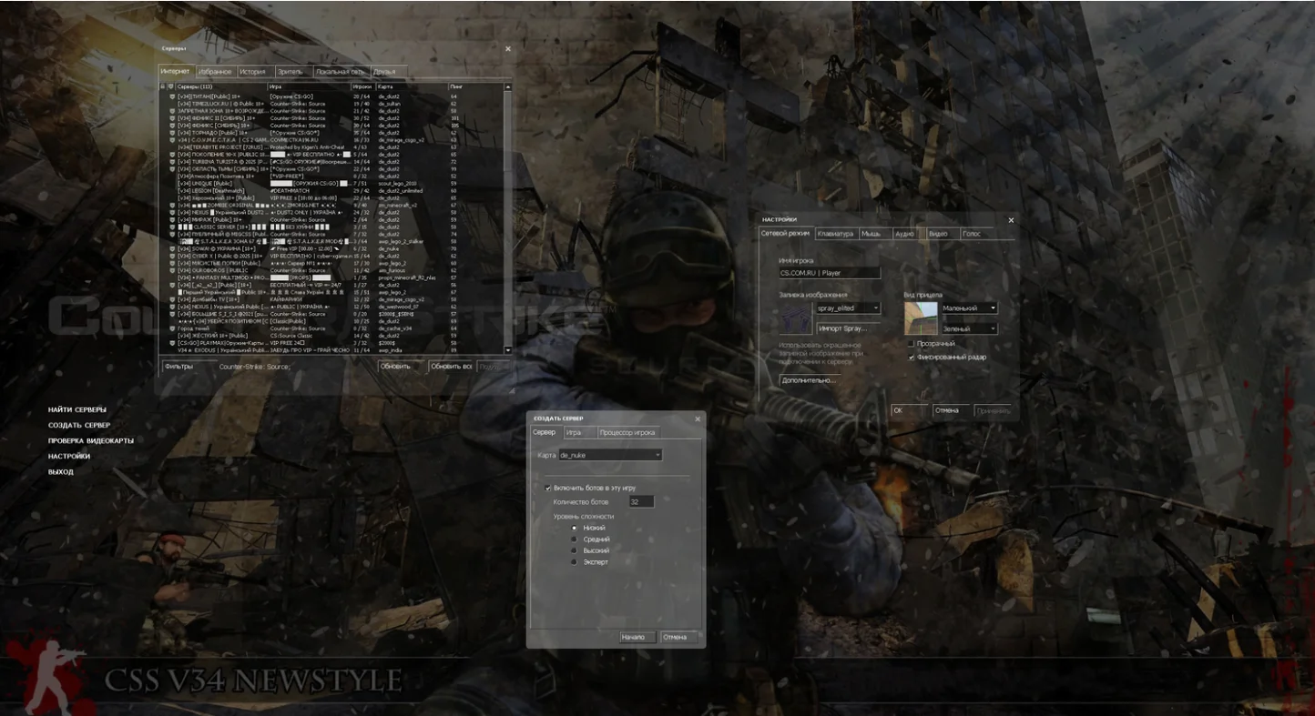 Скачать CS:S v34 NewStyle — обновлённая КС:С с новыми моделями, интерфейсом и скинами. Русская версия, без установки, работает стабильно на любом ПК.
