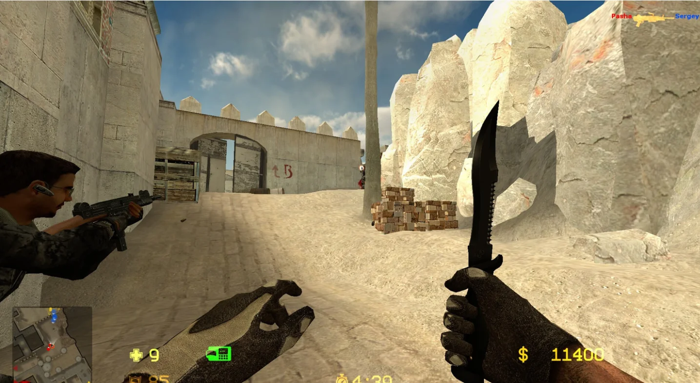 Сборка CS:S HD — это не просто набор новых текстур, а комплексное переосмысление визуальной части без изменения классического геймплея. Игровые модели стали детализированнее, оружие выглядит реалистично, а спецэффекты — более насыщенными. Карты получили новую жизнь за счёт улучшенного освещения, теней и текстур. Обновлён также интерфейс: меню, прицел, элементы HUD — всё это адаптировано под высокое разрешение и выглядит современно. При этом управление, механика стрельбы и физика игры остались нетронутыми, чтобы сохранить ту самую классику, за которую игроки любят версию v34.