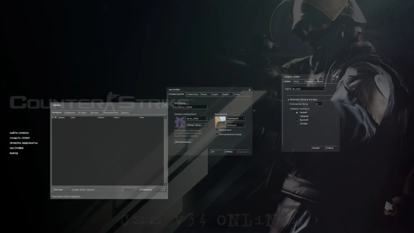 Скачать CS:S v34 Online — рабочая онлайн-сборка КСС с мастер-сервером, игрой через интернет и LAN. Русская версия, не требует Steam, запуск без