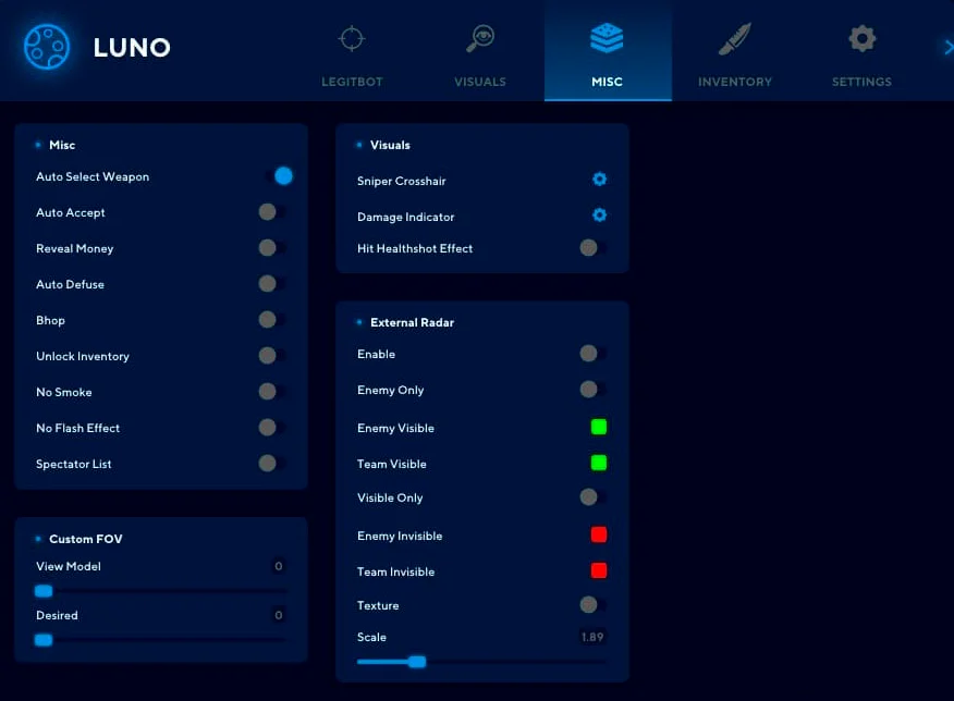 Среди ключевых функций Luno: аимбот, вх, триггербот, антиаим, радархак и скинченджер. Чит регулярно обновляется, поддерживает все последние версии CS:GO и легко настраивается под индивидуальные предпочтения. Он работает на всех популярных режимах, включая MM, Faceit (с отключенными античитами) и игровые сервера. Благодаря высокой скорости обновлений и адаптации под изменения в игре, чит остается актуальным и эффективным даже после патчей.